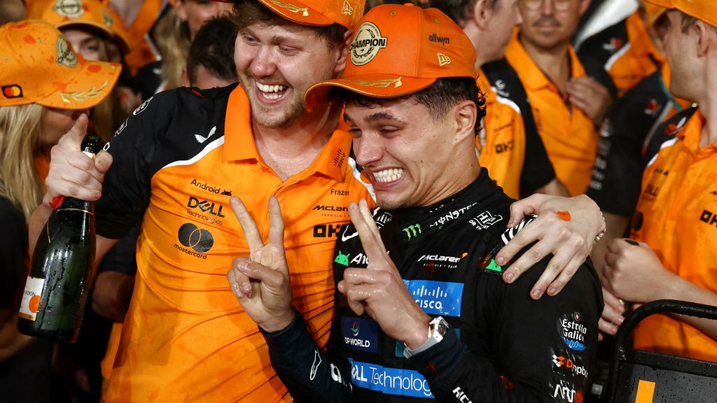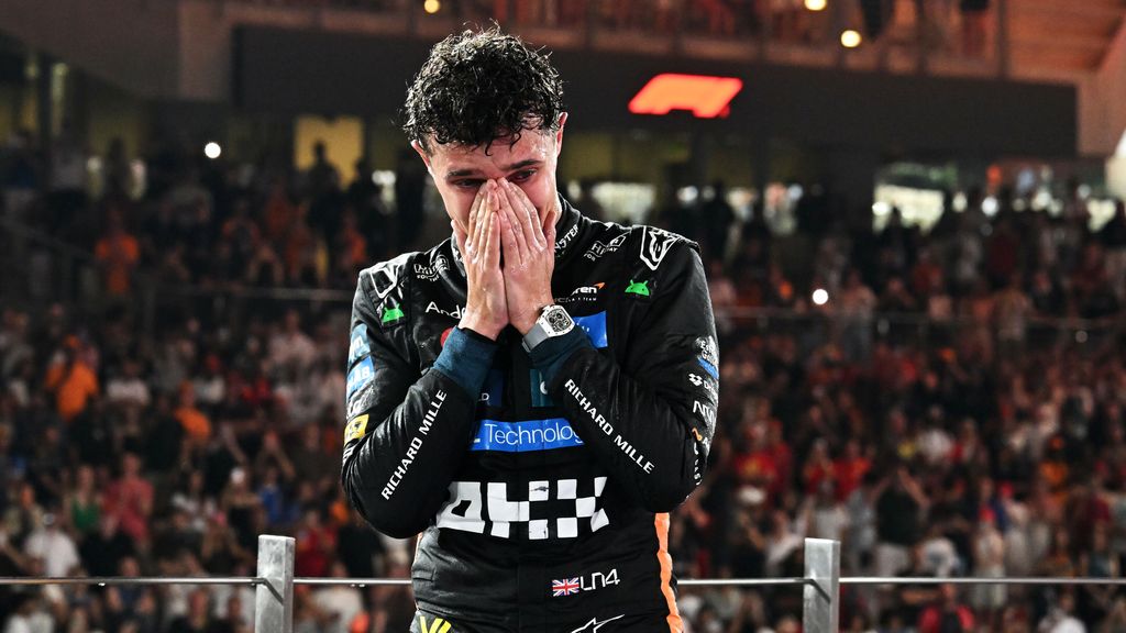 De snik was goed hoorbaar toen McLaren-coureur Lando Norris over de boordradio hoorde dat hij in Abu Dhabi wereldkampioen Formule 1 was geworden. Misschien dat hij daarom wel zijn helm zo lang mogelijk ophield, nadat hij uit zijn auto was gestapt.